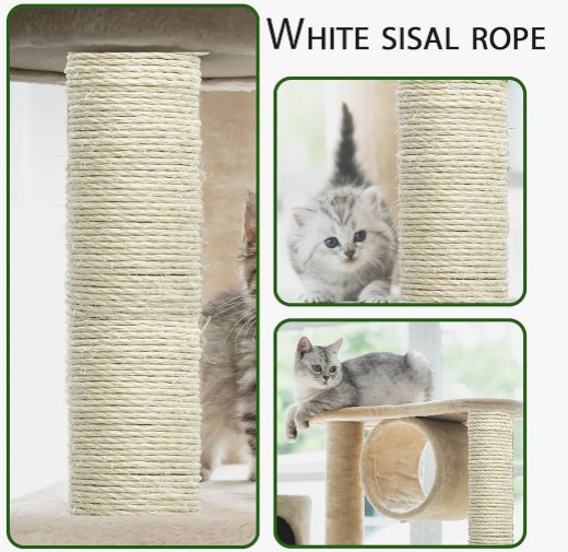 | Všestrannosť | Stonky sisalu sa môžu použiť ako podporná konštrukcia pre mačky na stúpanie a poškriabanie v dizajnoch stromu mačiek a môžu sa tiež použiť na výrobu plniacich materiálov pre mačacie hniezda a mačky |
