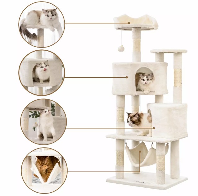 3. Životné skúsenosti s mačkami obohatenia: Trees mačiek sú zvyčajne vybavené rôznymi hračkami a interaktívnymi zariadeniami, ako sú zavesené gule a hojdacie laná, ktoré môžu stimulovať lovecké inštinkty mačiek a nechať ich mať v hre zábavu a spokojnosť. Hraním môžu mačky konzumovať energiu a zlepšiť interakciu a emocionálne spojenie s ich majiteľmi.
