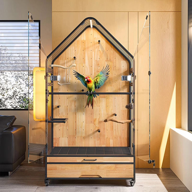 Táto prielomová drevená klietka pre vtáky, s uhlíkovým oceľovým rámom ako kostrou, dovážané gumové drevo ako rám a panoramatické temperované sklenené dvere, nielen ukazuje prírodnú krásu, ale tiež realizuje vedecké šľachtenie vtákov. Od bezpečnostnej ochrany po pohodlné čistenie, od bezplatných aktivít po pohodlné bývanie, každý detail ukazuje hlboké porozumenie vtáčím návykom, čo umožňuje milovníkom vtákov plne ukázať svoju prirodzenú povahu v bezpečnom a pohodlnom prostredí a majiteľovi prináša pohlcujúci zážitok