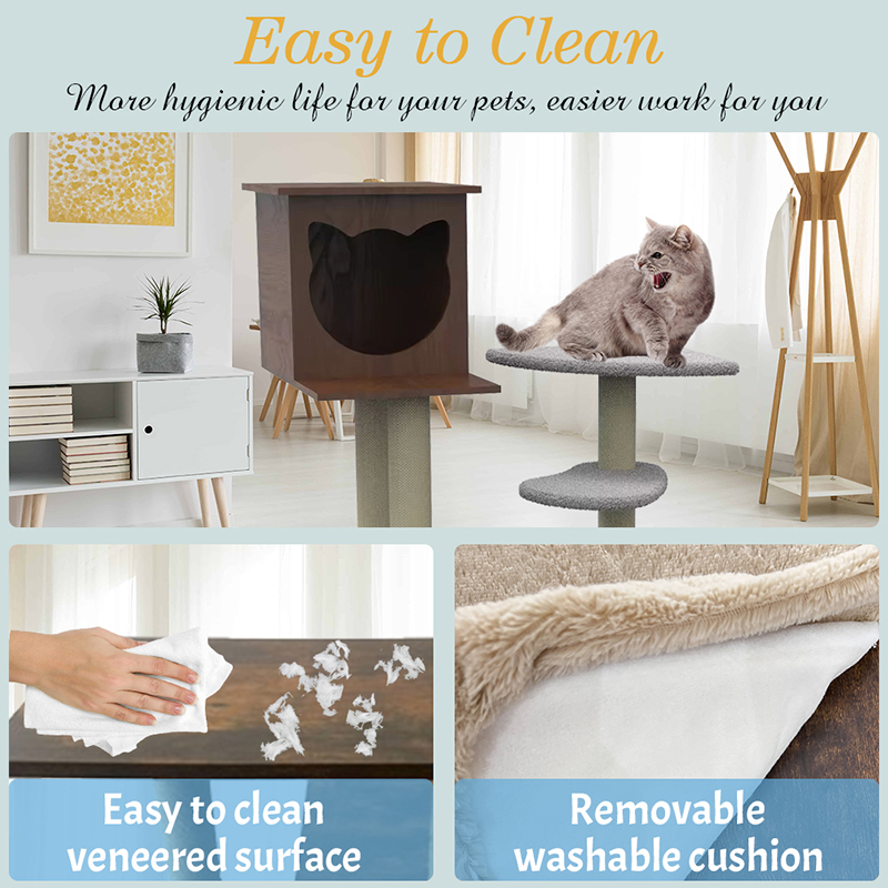 3.Omni-smerovacia bezpečnostná ochrana: Zhrusnuté stĺpy a prírodné sisálne lano sú pevne zranené, so silnou kapacitou nosenia a vedeckým výškou, aby sa zabezpečilo, že vaša mačka je rovnako stabilná ako hora zakaždým, keď skočí.